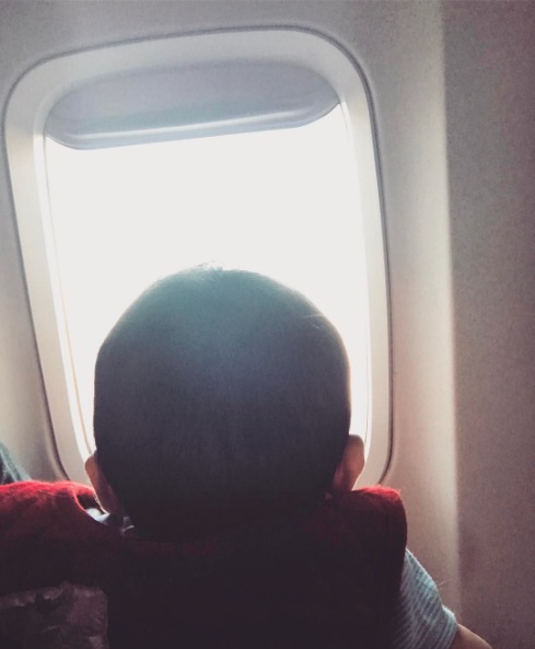 He is actually a very good plane traveller. He falls asleep as soon as we get on the plane, and that is great because he is not bothered by anything during the flight, except for the pilot or flight attendant’s announcements. For that situation we got a set of earphones he can use during the flights, and helps him sleep all the way.